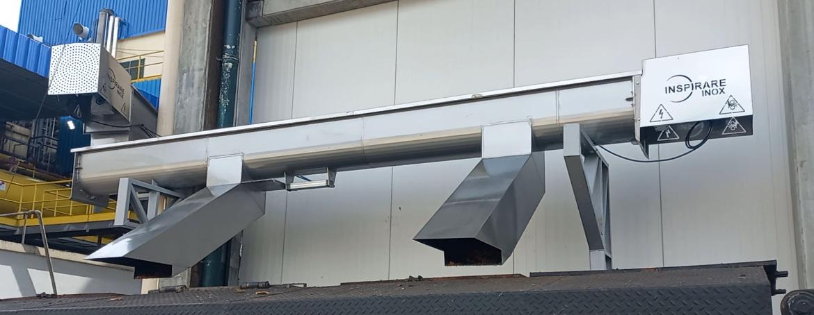 É um equipamento projetado para transportar materiais granulares, em pó ou semi-sólidos de um ponto a outro dentro de um processo produtivo. Fabricada em aço carbono ou inox 304, essa solução é altamente versátil, com comprimento sob medida conforme a necessidade do cliente. O diâmetro do tubo varia entre 50 mm e 600 mm, e a hélice interna pode ser soldada ou parafusada, permitindo um transporte contínuo de materiais. A capacidade de transporte varia de 1 a 50 m³/h, dependendo do tipo de material, diâmetro e inclinação, que pode ser horizontal, inclinada ou vertical, adaptando-se ao layout da planta.
