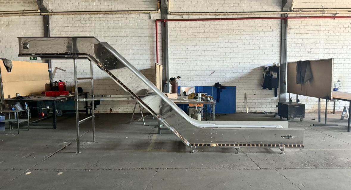 Transportador fabricado com estrutura metálica em aço carbono ou inox, equipado com correia em PVC, borracha ou modular, conforme a aplicação. Possui grande capacidade de carga, com inclinação ajustável ou fixa, e dimensões personalizadas de comprimento e largura. Conta com motorredutor com controle de velocidade para melhor desempenho operacional. Oferece benefícios como redução do esforço físico, aumento da produtividade, maior agilidade no transporte, segurança na operação e adaptação a diferentes tipos de carga, gerando economia de tempo nos processos. Como diferencial, a empresa oferece fabricação sob medida, materiais de alta durabilidade, suporte técnico especializado, conformidade com a norma NR-12 e ampla experiência em projetos industriais personalizados.
